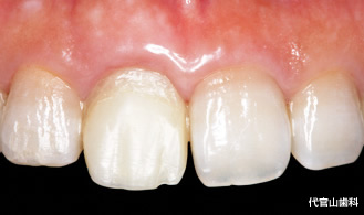 | 術前:倒れて歯が折れました。 | 術前:拡大写真 |